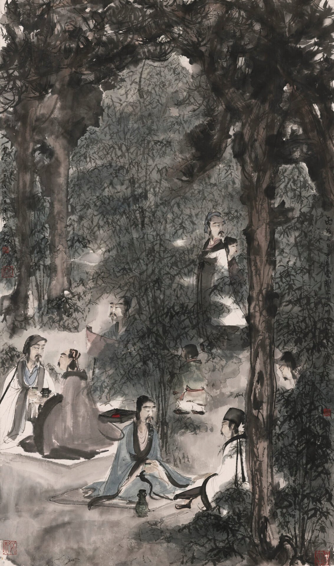 在「中國近現代書畫」專場中,傅抱石〈竹林七賢〉以 5,900 萬港元成交,為低估價三倍之多,成為本季該專場中的明星。
