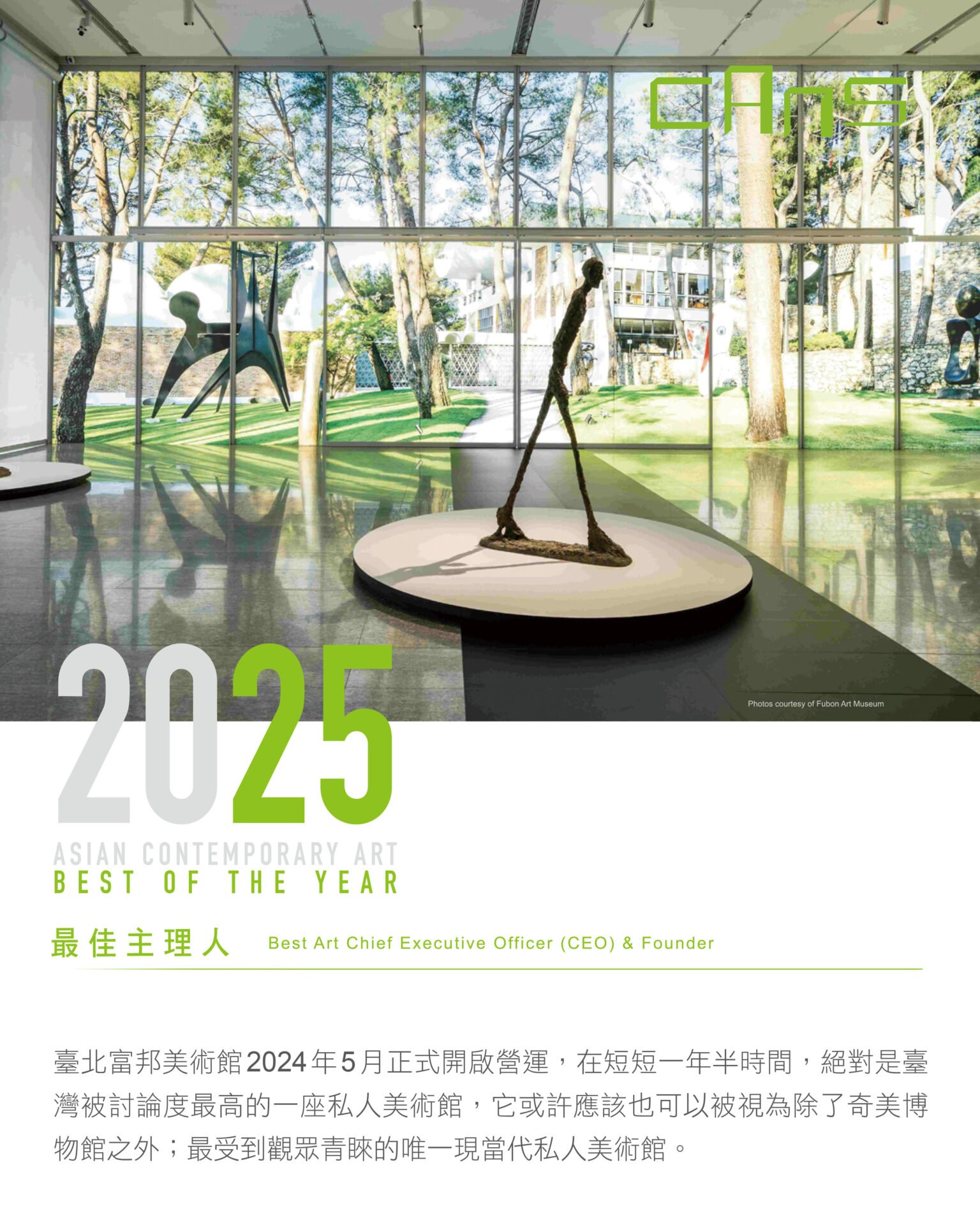9位入圍者,最先也最毫無異議就進入決選的是翁美慧。接著,則是陳菁螢,再來有王紹強與蜷川敦子。蜷川敦子所操作的東京藝術周,充分可以看出協調與疏通能力的多面向結構,也是目前亞洲城市的藝術周最受到肯定。臺灣畫協理事長陳菁螢更是有史以來畫協理事長最勤於衝破制規的一位,更堅持開闢出臺北藝術周來串連城市與藝術的多面向碰撞。王紹強館長,廣東美術館白鵝潭新館巨大結構,帶給他不僅僅是考驗更是另一個層次的藝術實踐。評委最後一輪票選之後,最一面倒的高票當選是富邦美術館的翁美慧。評委認為,開館才一年半的富邦美術館,塑造主理人對美學品味、藝術選擇的高度自主與自理能力,讓私人美術館導向一個懂得思想的場域,對觀眾群鎖齡清楚,同時又不顯絮絮叼叼自以為高調的學術論調,作品背後的學術理則以相當自然導入性手法來與觀眾溝通,一路下來;富邦美術館在展務的均質堪稱是臺灣私人美術館的精華。