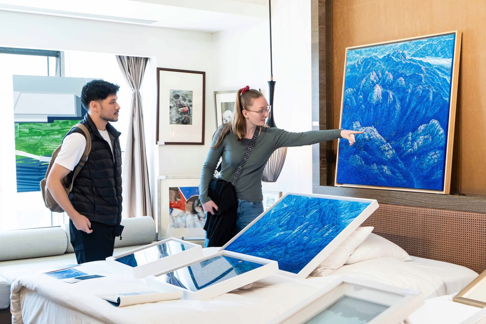 畫廊協會理事長陳菁螢近年專注於深耕貴賓活動,將「收藏」轉化為一種深度的社交連結與價值認同。這種精緻的經營策略,成功吸引了台南最重要的在地商會到場支持。這群深具實力的在地實業家近年熱情走入藝博會現場,將台南特有的「交陪」文化發揮極致;他們不僅在首日親自購藏,更在隨後展期間呼朋引伴共賞佳作,不少企業家一人便橫跨多家畫廊購入 5 至 10 件作品,將支持藝術視為對自身「文化存摺」的儲值。