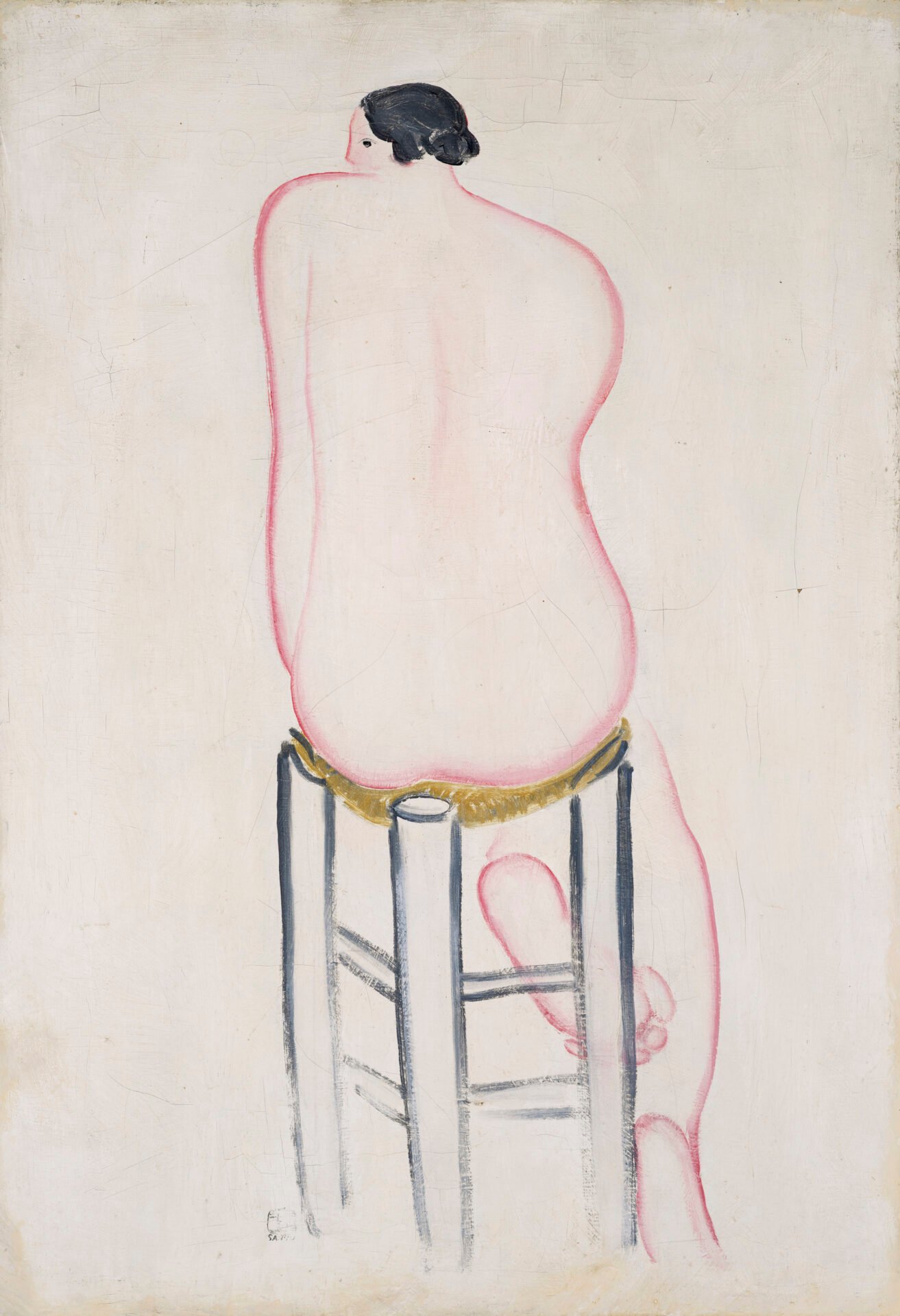 〈椅子上的裸女背像II〉創作於常玉事業與愛情雙收的1930年,正值其受藝術經紀人亨利·皮爾·侯謝賞識並與哈蒙尼耶小姐結婚、創作能量蓬勃的黃金時期。此作屬常玉「粉紅時期」最難得的裸女佳作,展現其以粉線取代墨線、以留白塑造肌膚光澤的東西融合美學。同時,本作在巴黎「狂飆年代」的超現實主義氛圍下亦散發前衛氣質,裸女背影的姿態與空間張力與曼.雷的攝影語彙產生視覺共鳴,於東方節制與西方前衛間取得微妙平衡。來源顯赫且脈絡清晰,最初由常玉的首任經紀人亨利·皮耶·侯謝收藏,畫背仍保留其庫存標籤。侯謝過世後,多件常玉作品由巴黎畫商尚·克勞德·希耶戴承接,其夫人丹尼絲·侯謝留下的手帳亦明確記錄相關交易。作為常玉身後最重要的推廣者之一,希耶戴於1977年以常玉作品作為畫廊開幕主題,顯示其對藝術家的堅定信心。本作當年由荷蘭收藏家L.M.W.梵·奧斯特羅姆先生購藏,家族自1977年珍藏至今,傳承近半個世紀。