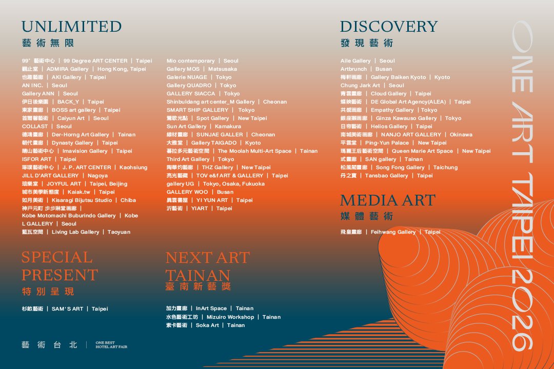 【ONE ART Taipei 藝術台北】自創立以來,持續以精準策展與高規格展商陣容打造高端飯店型藝術博覽會,為藏家與畫廊提供專業且具深度的交流平台。第八屆「ONE ART Taipei 2026 藝術台北」將於 2026年1月16日至18日於「JR 東日本大飯店台北」再度登場,持續打造兼具國際視野與深度交流的飯店型藝術博覽會。執行會長劉忠河表示:「全球藝術市場已進入多元共融的新階段,台灣以穩健的市場體質與深厚文化底蘊,正成為亞太當代藝術的重要據點。面對收藏型態的轉變與千禧世代藏家崛起,本屆展會首度與國際藝術平台 ArtSticker 攜手合作,將線下觀展體驗延伸至線上,觀眾可即時預覽作品、與國際畫廊互動,隨手掌握全球藝術趨勢,實現『線上線下並進』、『全球同步互動』的全新藝術交流模式。」